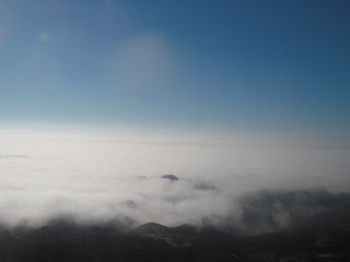 Vistas impresionantes, ya que la niebla estaba abajo y en el Santuario un sol de primavera, había 5 grados más arriba que abajo.