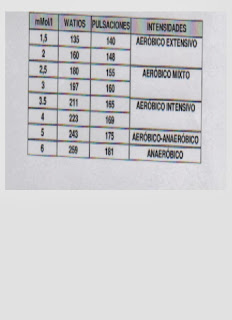 Además , con los resultados de la concentración del ácido láctico en cada serie , te marcan los intervalos de pulsaciones en los que tienes que entrenar , para mejorar en las distintas " capacidades " ciclistas.